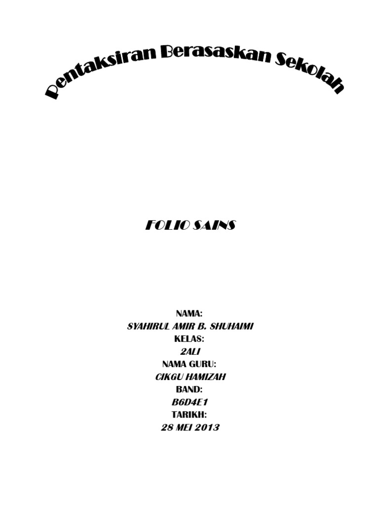 Contoh Kerja Kursus Sains Tingkatan 3 Muka Depan